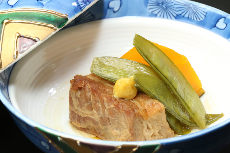 ジュワーっと滲み出るジューシーな肉汁がたまらない陶板焼きと地獄蒸し鳥が付いたボリューム満点の料理です。お腹いっぱいお料理を楽しみたい方に人気のコースです。季節によって料理内容は異なります。