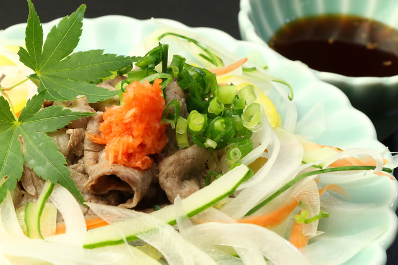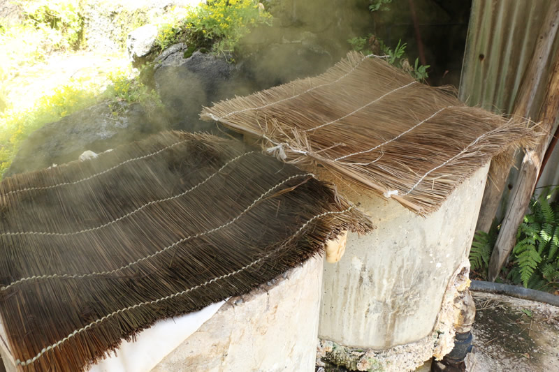 宿にある温泉の蒸気を利用した蒸し釜でじっくり調理した蒸し鶏は、お箸でほぐれるほど柔らか。さっぱりしながらもジューシーな味わいです。