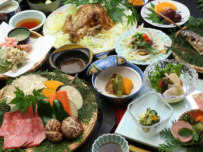 わいた温泉郷ならではの自然や旬の食材を利用した田舎料理で、自然のものを堪能する贅沢、自然のエネルギーを頂ける喜びをご堪能ください。